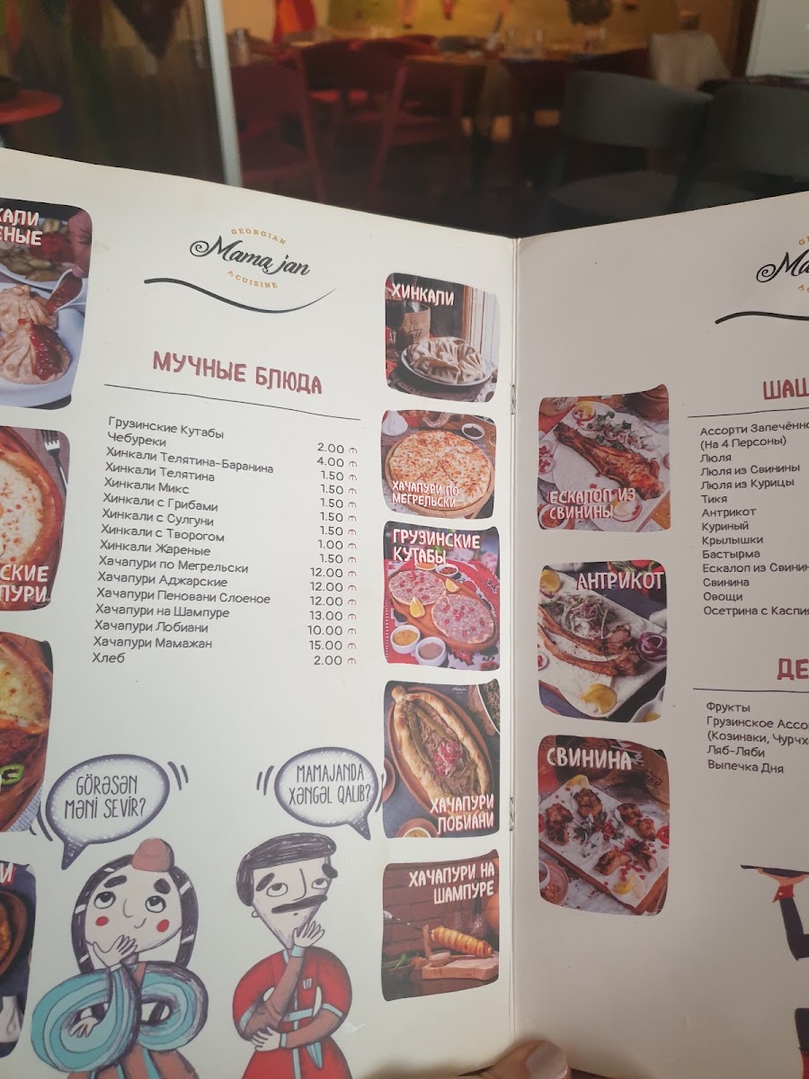 Highlights include dishes like fried eggplant cubes, hearty Kharcho soup, and the beloved Khachapuri in several regional styles, such as the Emirski and Mengrelski varieties. The menu also features satisfying options like Gürcü Xəngəli and Shashlik, reflecting the rich diversity of Georgian culinary traditions.